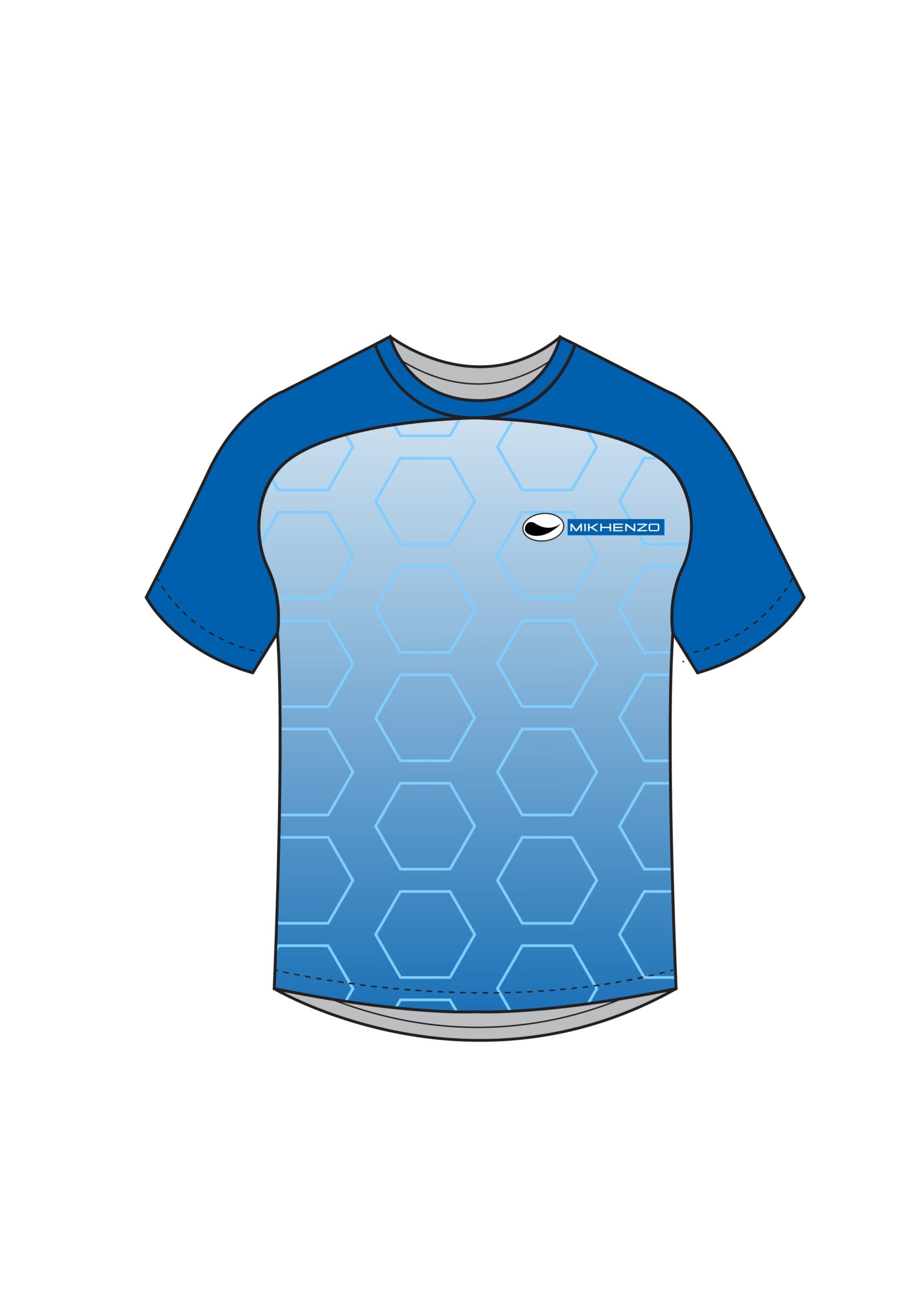 – Egyptian Blue mixed with Sky blue body with sky blue hexagon shapes and solid Egyptians blue shoulders and sleeves.