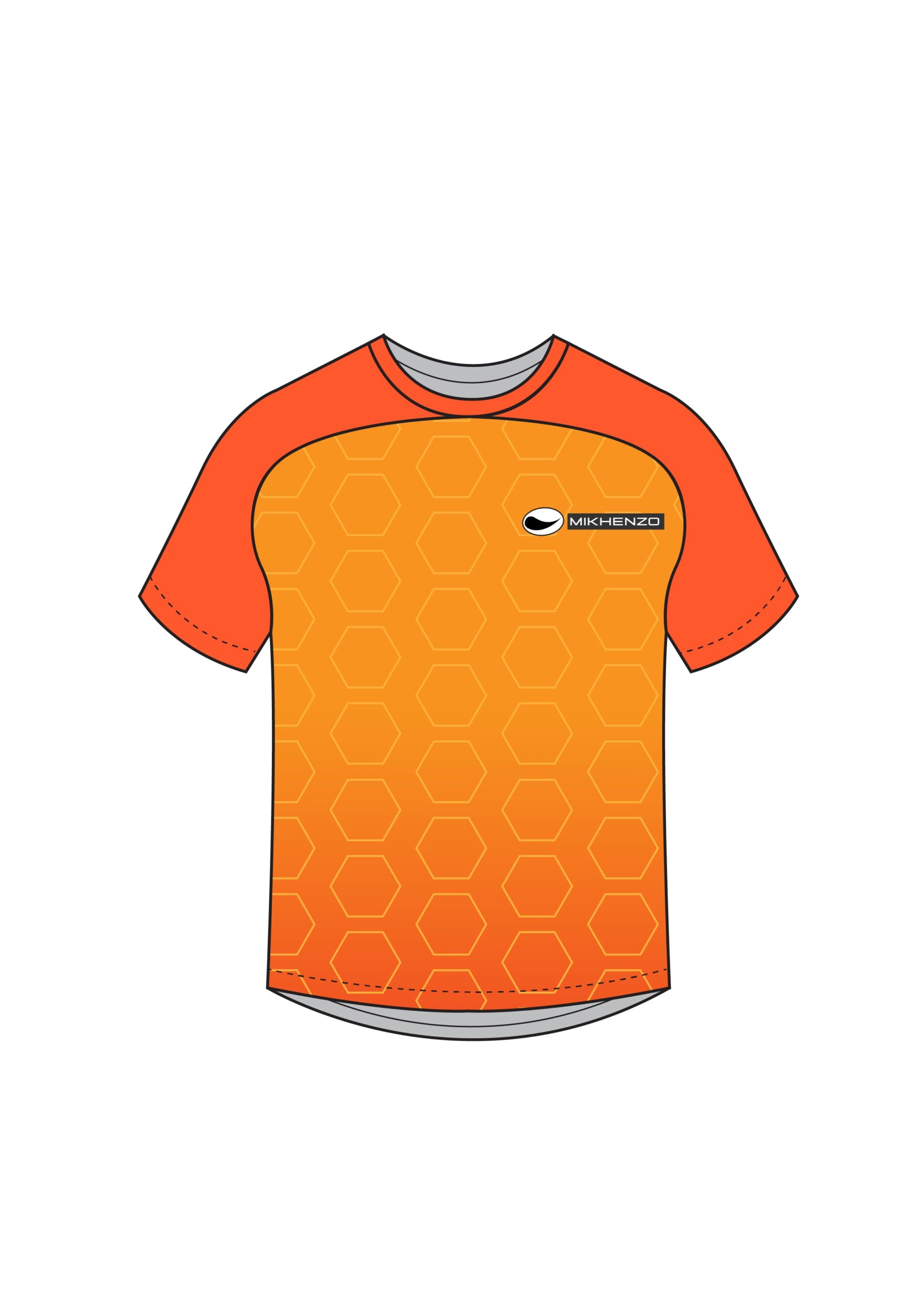 – Exuberant Orange mixed with regular orange body and orange hexagon shapes and Solid Exuberant Orange shoulders and sleeves.