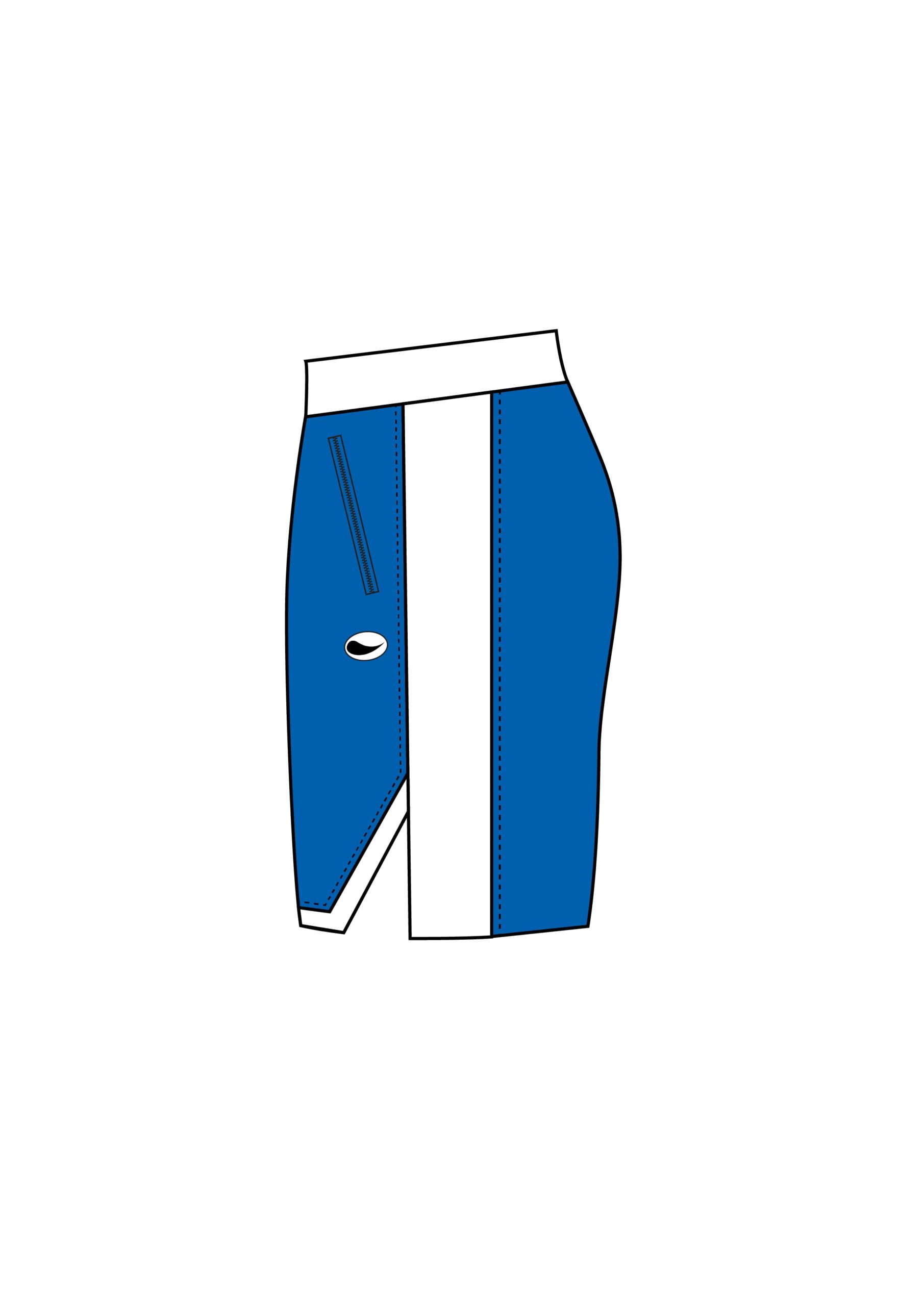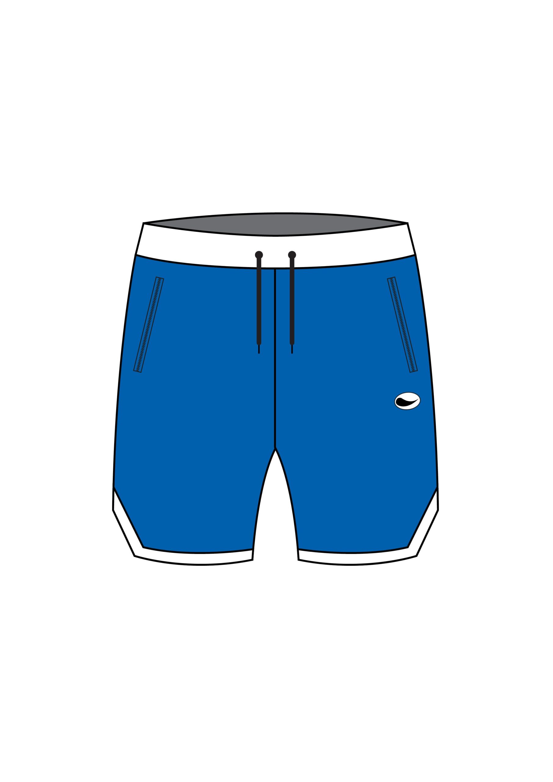 – Egyptian Blue color body shorts with White color for front lower L/R thigh strip, left/right waist sides and waist band.